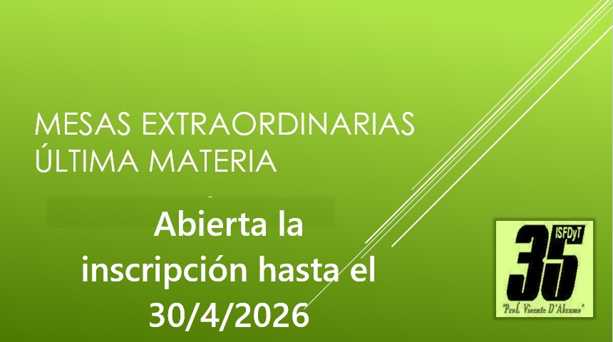 Hasta el día 30 de abril de 2026 inclusive se encuentra abierta la inscripción para aquellos alumnos que adeuden una sola materia «para recibirse» y quieran solicitar mesa de examen para obtener el título final, deben solicitarla mediante el siguiente documento descargándolo para ser completado correctamente y entregada a cada preceptor responsable de la carrera.